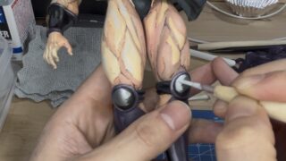 ジョジョの奇妙な冒険のMometria カーズ フィギュアを2次元リペイントしている様子。肌の彩色工程。