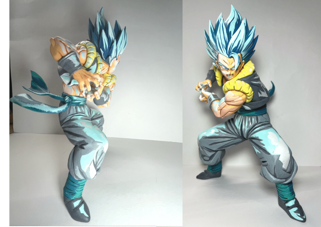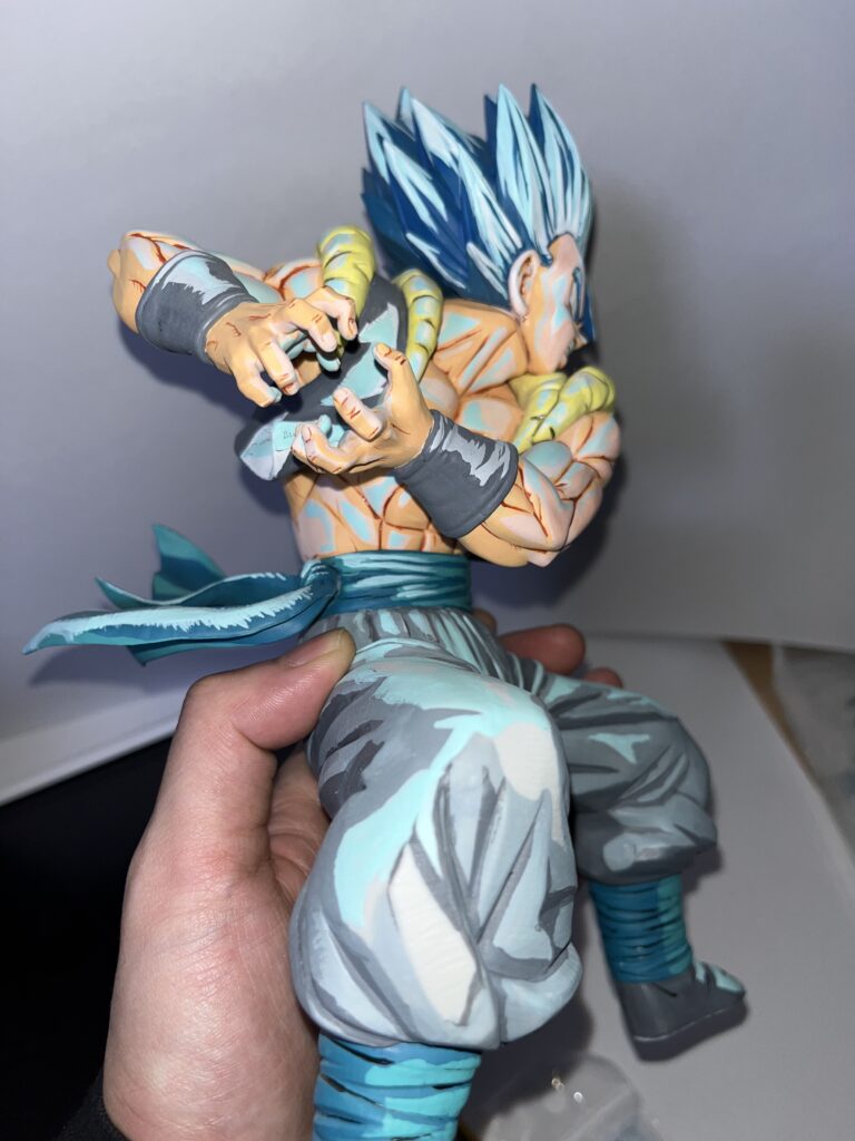 今回素体のゴジータは金髪なのですが、映画「ドラゴンボール超 ブロリー」の劇中でかめはめ波を打つシーンはブルーになっていたはずなので青髪にリペイントしました。