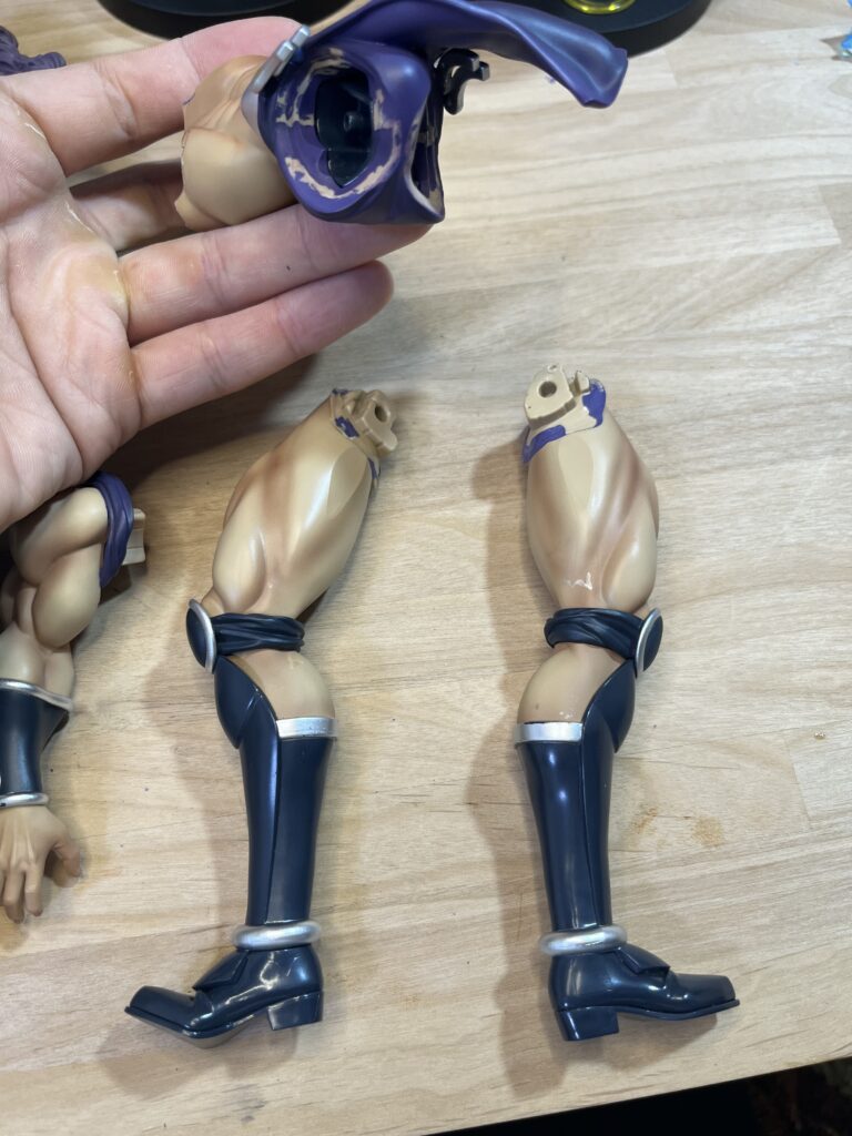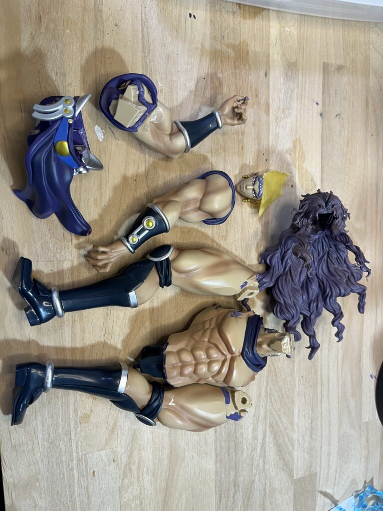塗り別け出来そうなところまで分解できたので再組立できるか確認したところ髪の毛のパーツが引っかかるのでもう一段階分解します。