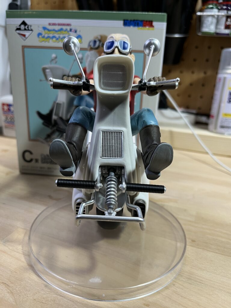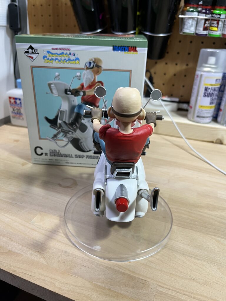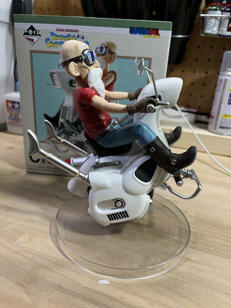 一輪バイクに跨った亀仙人の立体化です。個人的に今回のくじでは1番欲しいフィギュアでした。サイズは約16cmとコンパクトながらよく造形されています。